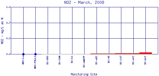 The above map indicates water quality monitoring sites. To view data at a specific site select it from the map with the mouse.