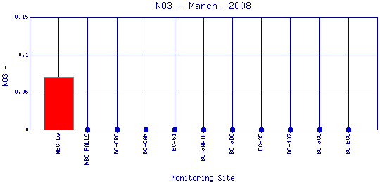 The above map indicates water quality monitoring sites. To view data at a specific site select it from the map with the mouse.