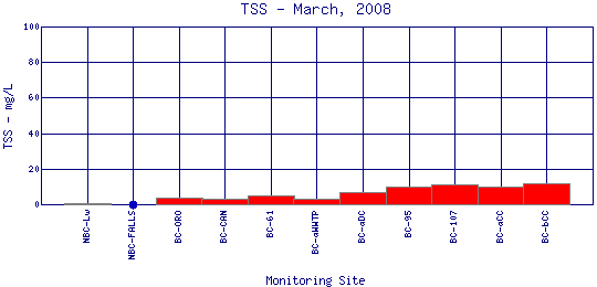 Longitudinal Total Suspended Solids Profiles for March, 2008