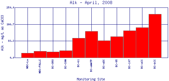 Alkalinity refers to how well a water body can neutralize acids. Alkalinity measures the amount of alkaline compounds in water, such as carbonates (CO3 2-), bicarbonates (HCO3 -), and hydroxides (OH-). These compounds are natural buffers that can remove excess hydrogen ions that have been added from sources such as acid rain or acid mine drainage. Alkalinity mitigates or relieves metals toxicity by using available HCO3 - and CO3 2- to take metals out of solution, thus making it unavailable to fish. Alkalinity is affected by the geology of the watershed; watersheds containing limestone will have a higher alkalinity than watersheds where granite is predominant. The Boulder Creek Watershed is composed primarily of granite rocks, thus the water has a lower alkalinity content.