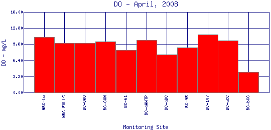 Longitudinal Dissolved Oxygen Profiles for April, 2008