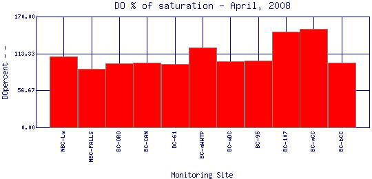 Longitudinal DO Percent of Saturation Profiles for April, 2008