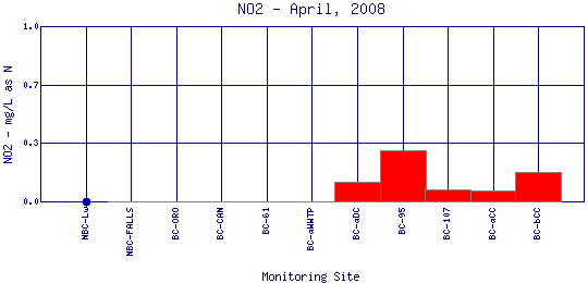 The above map indicates water quality monitoring sites. To view data at a specific site select it from the map with the mouse.
