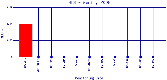 The above map indicates water quality monitoring sites. To view data at a specific site select it from the map with the mouse.