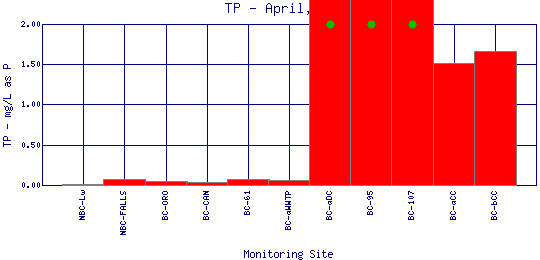 The above map indicates water quality monitoring sites. To view data at a specific site select it from the map with the mouse.