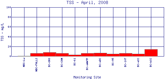 Longitudinal Total Suspended Solids Profiles for April, 2008