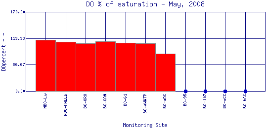 Longitudinal DO Percent of Saturation Profiles for May, 2008