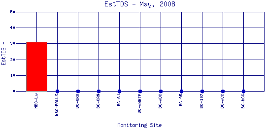 The above map indicates water quality monitoring sites. To view data at a specific site select it from the map with the mouse.