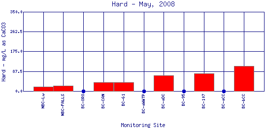 The above map indicates water quality monitoring sites. To view data at a specific site select it from the map with the mouse.