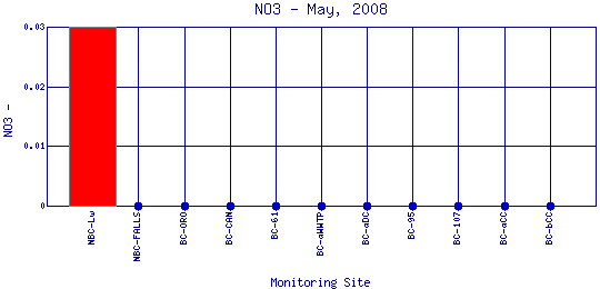 The above map indicates water quality monitoring sites. To view data at a specific site select it from the map with the mouse.