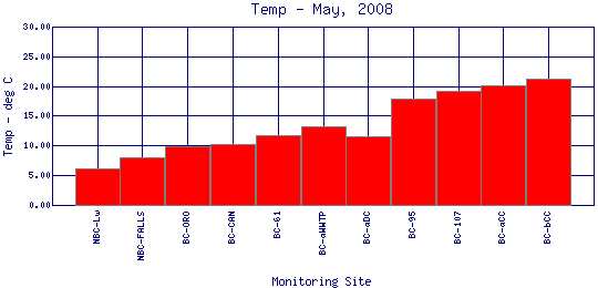 Select on the parameter name to view more detailed information for that parameter in this month. Select on the site name to view data time series observed at that station. For monitoring site locations see site location map.