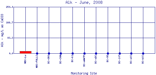 Alkalinity refers to how well a water body can neutralize acids. Alkalinity measures the amount of alkaline compounds in water, such as carbonates (CO3 2-), bicarbonates (HCO3 -), and hydroxides (OH-). These compounds are natural buffers that can remove excess hydrogen ions that have been added from sources such as acid rain or acid mine drainage. Alkalinity mitigates or relieves metals toxicity by using available HCO3 - and CO3 2- to take metals out of solution, thus making it unavailable to fish. Alkalinity is affected by the geology of the watershed; watersheds containing limestone will have a higher alkalinity than watersheds where granite is predominant. The Boulder Creek Watershed is composed primarily of granite rocks, thus the water has a lower alkalinity content.