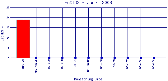 The above map indicates water quality monitoring sites. To view data at a specific site select it from the map with the mouse.