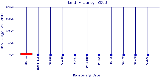 Hardness generally refers to the amount of calcium and magnesium in water. In household use, these cations (ions with a charge greater than +1) can prevent soap from sudsing and leave behind a white scum in bathtubs. In the aquatic environment, calcium and magnesium help keep fish from absorbing metals, such as lead, arsenic, and cadmium, into their bloodstream through their gills. Therefore, the harder the water, the less easy it is for toxic metals to absorb onto gills. Water in the Boulder Creek watershed is generally soft because the water comes mainly from melting snow which is low in minerals and metals.
