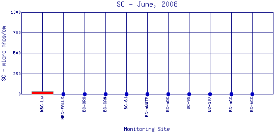 Longitudinal Specific Conductance Profiles for June, 2008