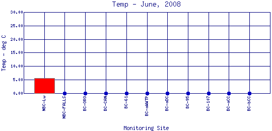 The above map indicates water quality monitoring sites. To view data at a specific site select it from the map with the mouse.