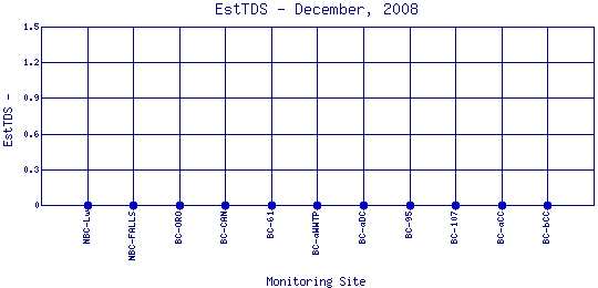 The above map indicates water quality monitoring sites. To view data at a specific site select it from the map with the mouse.