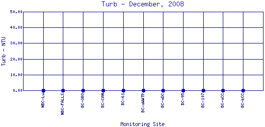 The above map indicates water quality monitoring sites. To view data at a specific site select it from the map with the mouse.