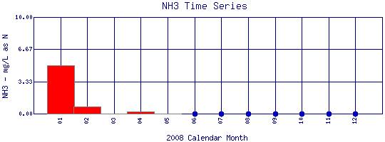 Ammonia Time Series for 2008 Boulder Creek at 107th St |