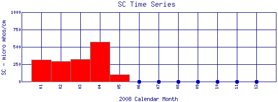 Specific Conductance Time Series for 2008 Boulder Creek at 61st St. |