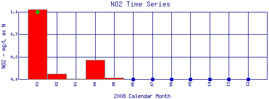 Nitrite Time Series for 2008 Boulder Creek at 95th St |