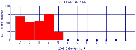 Specific Conductance Time Series for 2008 Boulder Creek at 95th St |