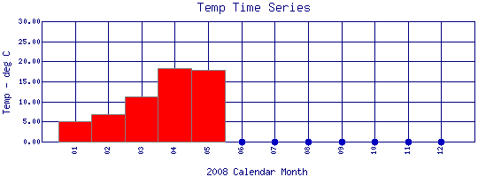 Water Temperature Time Series for 2008 Boulder Creek at 95th St |