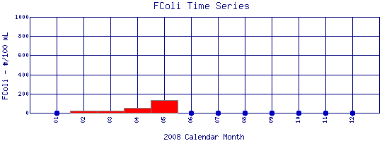 Fecal Coliform Time Series for 2008 Boulder Creek at Eben G. Fine Park |