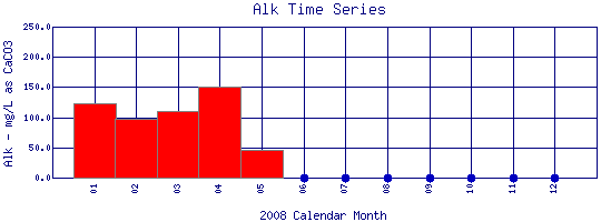 Total Alkalinity Time Series for 2008 Boulder Creek Above Coal Creek |