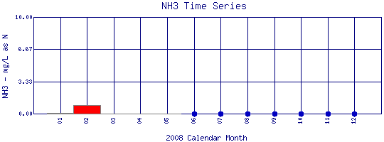 Ammonia Time Series for 2008 Boulder Creek Above Coal Creek |