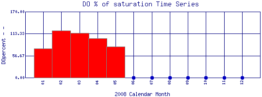 DO Percent of Saturation Time Series for 2008 Boulder Creek above Dry Creek |
