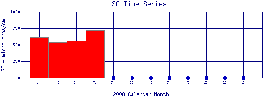 Specific Conductance Time Series for 2008 Boulder Creek above Dry Creek |