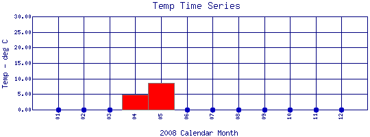 Water Temperature Time Series for 2008 Middle Boulder Creek Above North Boulder Creek Confluence |