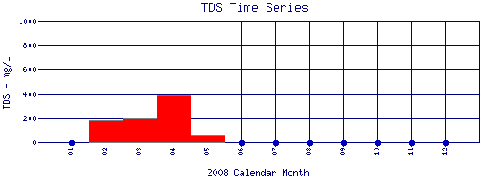 Total Dissolved Solids Time Series for 2008 Boulder Creek above WW Plant |