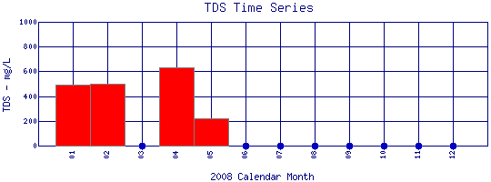 Total Dissolved Solids Time Series for 2008 Boulder Creek Below Coal Creek |