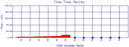 Stream Flow Time Series for 2008 Silver Lake Pipe outfall in Lakewood Reservoir |