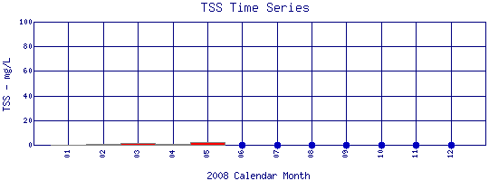 Total Suspended Solids Time Series for 2008 Silver Lake Pipe outfall in Lakewood Reservoir |