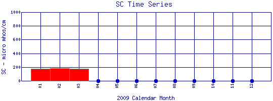 Specific Conductance Time Series for 2009 North Beaver Creek @ Middle Boulder Creek |