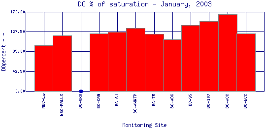 Longitudinal DO Percent of Saturation Profiles for January, 2003