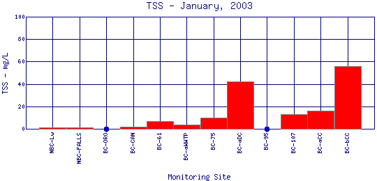 Longitudinal Total Suspended Solids Profiles for January, 2003