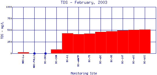 Longitudinal Total Dissolved Solids Profiles for February, 2003