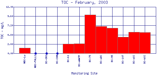 Longitudinal Total Organic Carbon Profiles for February, 2003
