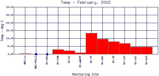 The above map indicates water quality monitoring sites. To view data at a specific site select it from the map with the mouse.