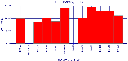 Longitudinal Dissolved Oxygen Profiles for March, 2003