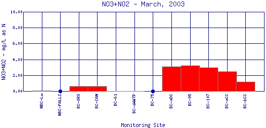Longitudinal Nitrate + Nitrite Profiles for March, 2003