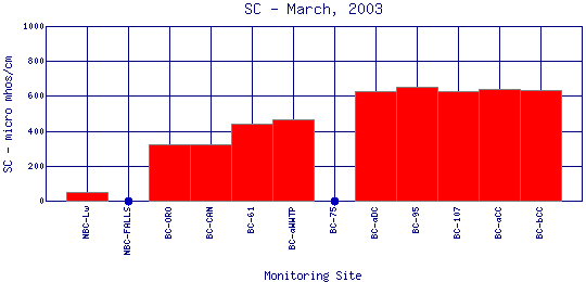 Longitudinal Specific Conductance Profiles for March, 2003