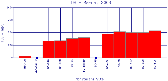 Longitudinal Total Dissolved Solids Profiles for March, 2003