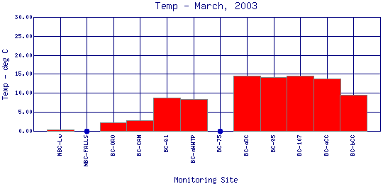Longitudinal Water Temperature Profiles for March, 2003
