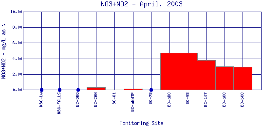 Longitudinal Nitrate + Nitrite Profiles for April, 2003