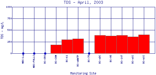 Longitudinal Total Dissolved Solids Profiles for April, 2003